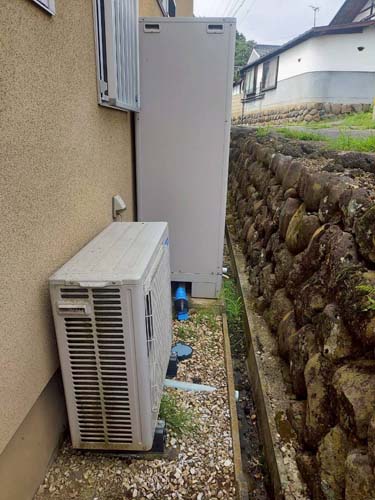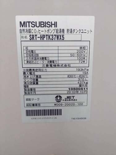 八代市本町 三菱電機自然冷媒CO2ヒートポンプ給湯機 貯湯タンクユニットSRT-HPTK37WX5→コロナ自然冷媒CO2家庭用ヒートポンプ給湯機 貯湯ユニット CTU-37AZ1K エコキュート交換工事