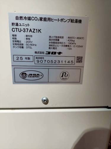 八代市本町 コロナ自然冷媒CO2家庭用ヒートポンプ給湯機 貯湯ユニット CTU-37AZ1K エコキュート交換工事|熊本県でエコキュート交換・取り付けなら|熊本エコキュート工事販売館